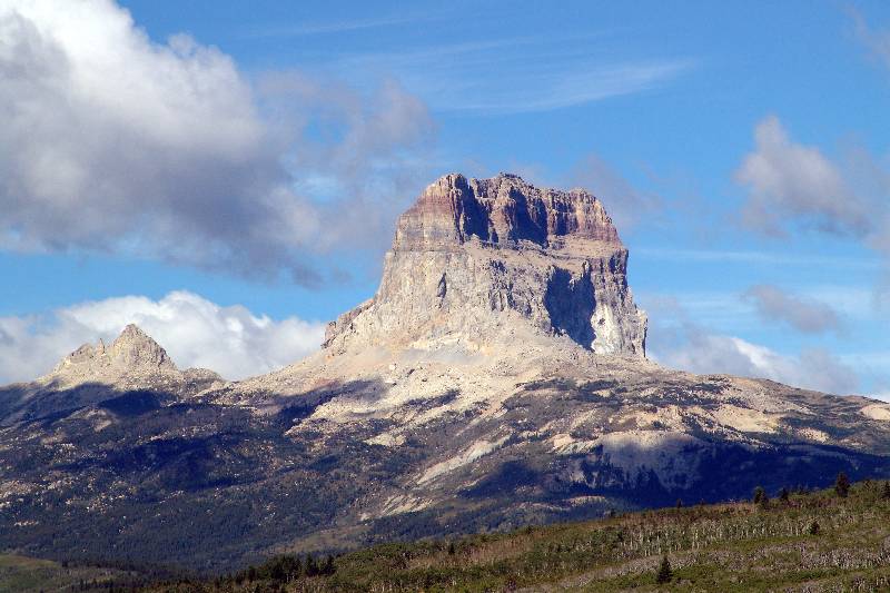 This view is from a little further south. The customs point on Montana highway 17 between the US and Canada is called Chief Mountain and there is a small village with that name just north of the border.