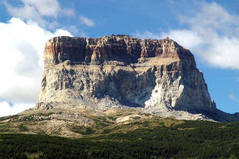 In the language of the local Piegan Indians the mountain is know as Minnow Stakhoo. A legend on how the mountain got its name can be found at http://www.ocbtracker.com/ladypixel/chiefmtn.html.