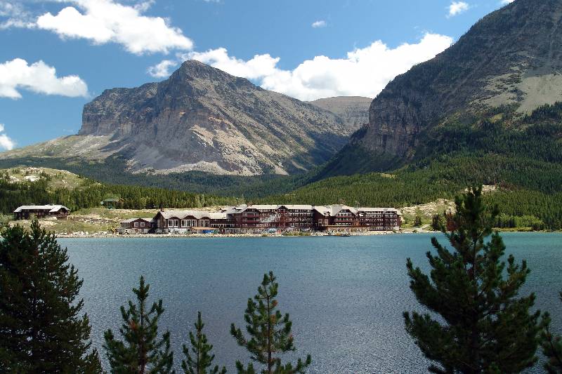 Located on Swiftcurrent Lake, the Many Glaciers Lodge is the largest in the park with 208 rooms. It was built in 1914 and 1915. One of the best know features of Glacier National Park are red "Jammer" buses which offer tours from all of the lodges in the park.
