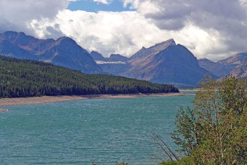 As you head south on highway 89 you reach a junction with a major road into the Many Glaciers area of the Glacier National Park. This like most roads in the park, this one winds along beside Lake Sherburne.