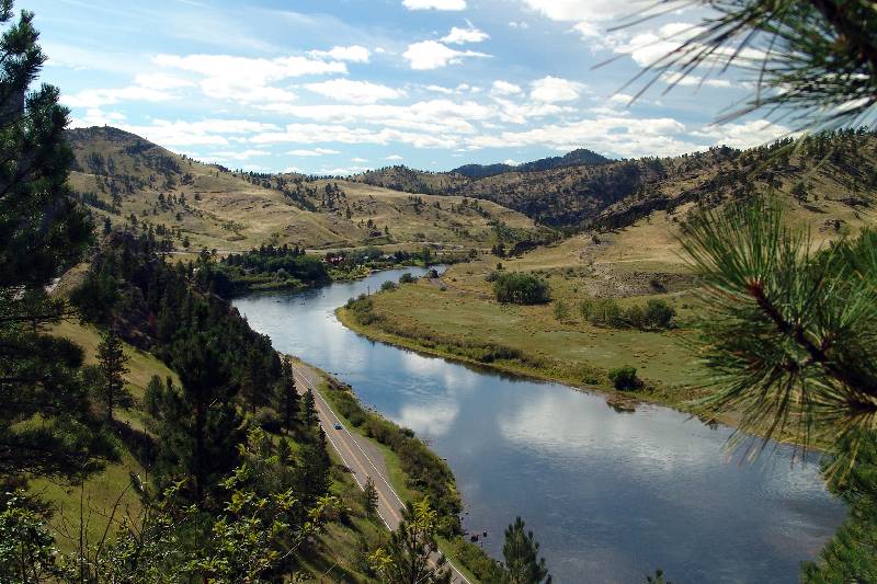 When I returned home I came down the easter edge of the park to Great Falls and then Helena. Between these two cities you cross the Missour River several times. This is a view from an overlook beside Interstate Highway 15.