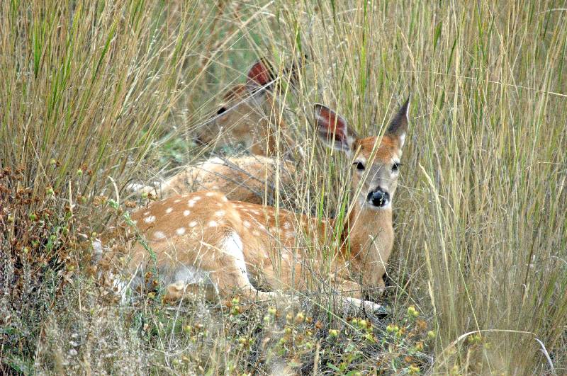 Just down the slope from their mother these two fawns hid in the grass. I noticed the one facing me but did not see the second one until I looked through the telephoto lens. We have a large, framed copy of this picture in the department office at Utah State University.